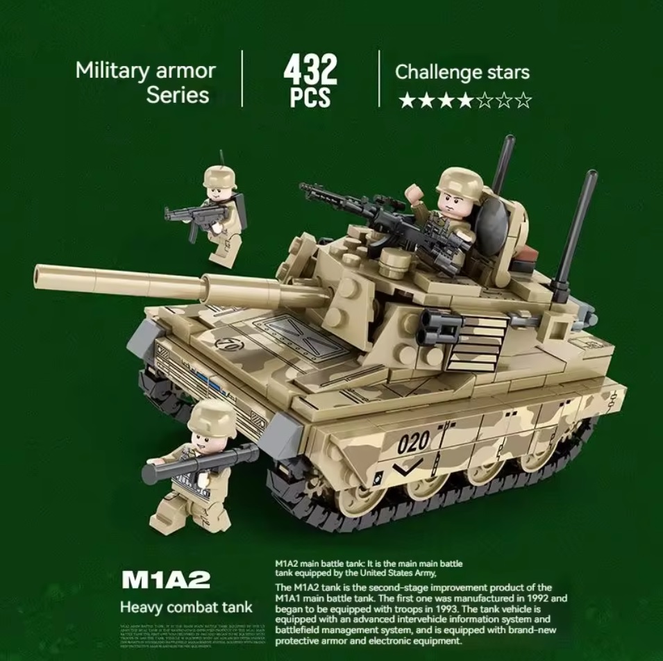 Zestaw klocków konstrukcyjnych, który pozwala zbudować imponujący model czołgu Abrams M1A2, jednego z najbardziej zaawansowanych technologicznie wozów bojowych na świecie. Zestaw składa się z 432 elementów, w pełni kompatybilnych z klockami LEGO, co zapewnia nieograniczone możliwości twórczej zabawy. Dzięki realistycznym detalom i dodatkowym akcesoriom, takim jak figurki żołnierzy i bronie, ten zestaw to idealny prezent na urodziny dla każdego