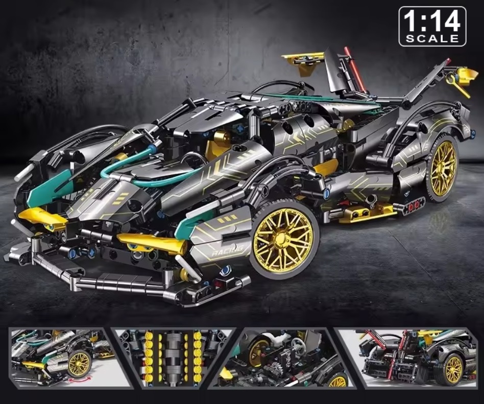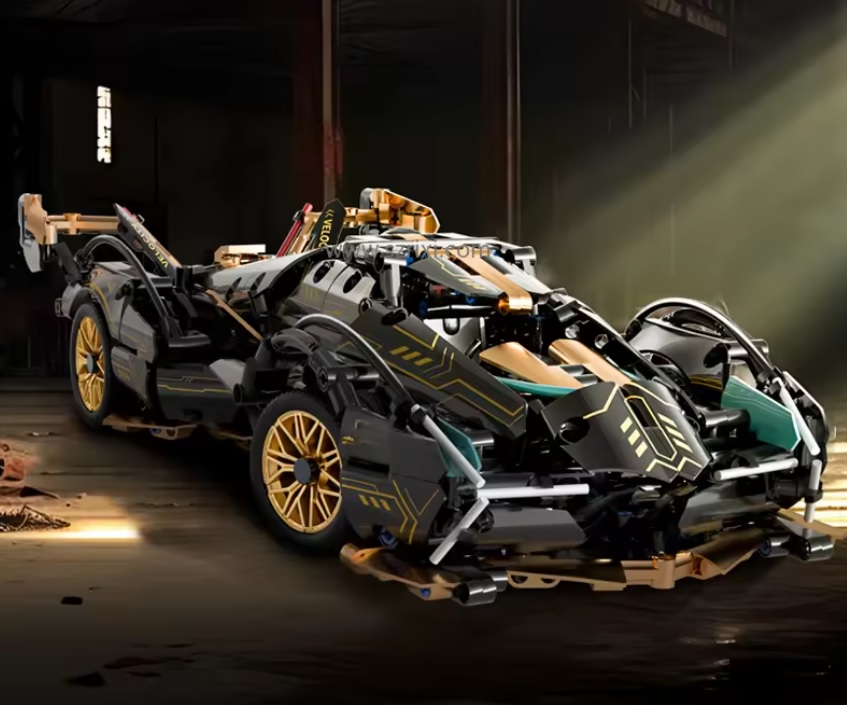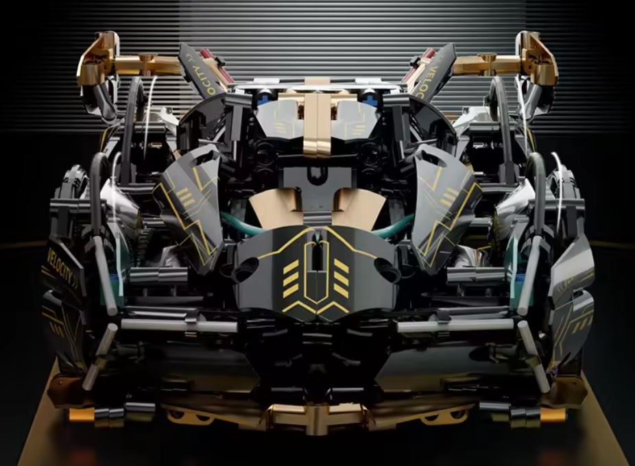 Niepowtarzalny wzór czarnego futurystycznego Lamborghini ze złotymi elementami Niesamowity stosunek ceny do ilości elementów, świetna jakość elementów.