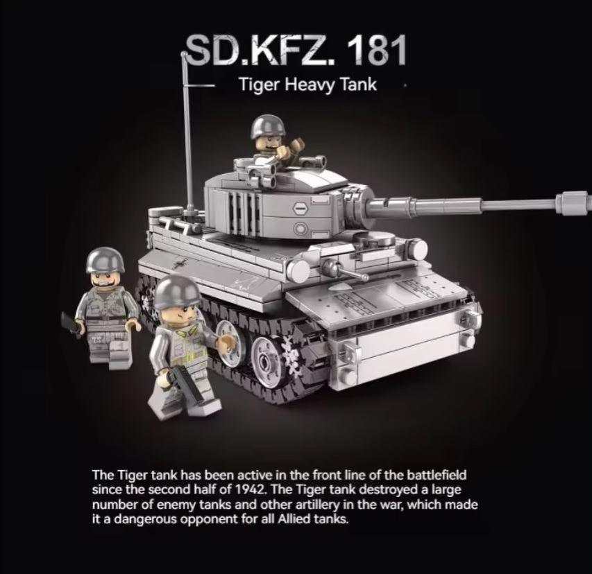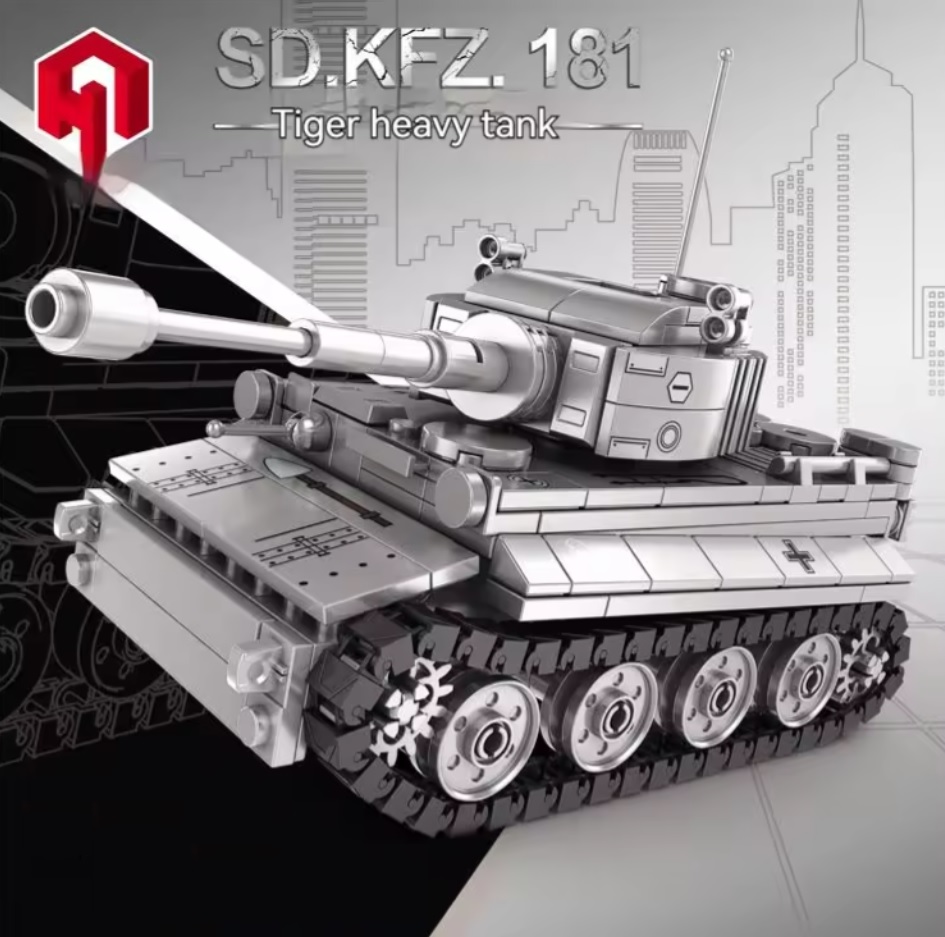 Model legendy II wojny światowej – Czołg Tygrys I. Zestaw zawiera 457 elementów kompatybilnych z LEGO, które pozwalają na stworzenie szczegółowej repliki tego potężnego pojazdu pancernego. Idealny wybór na prezent urodzinowy dla każdego fana militariów i budowania z klocków. Zestaw zapakowany jest w duże, eleganckie pudełko. Idealny upominek na każdą okazję.
